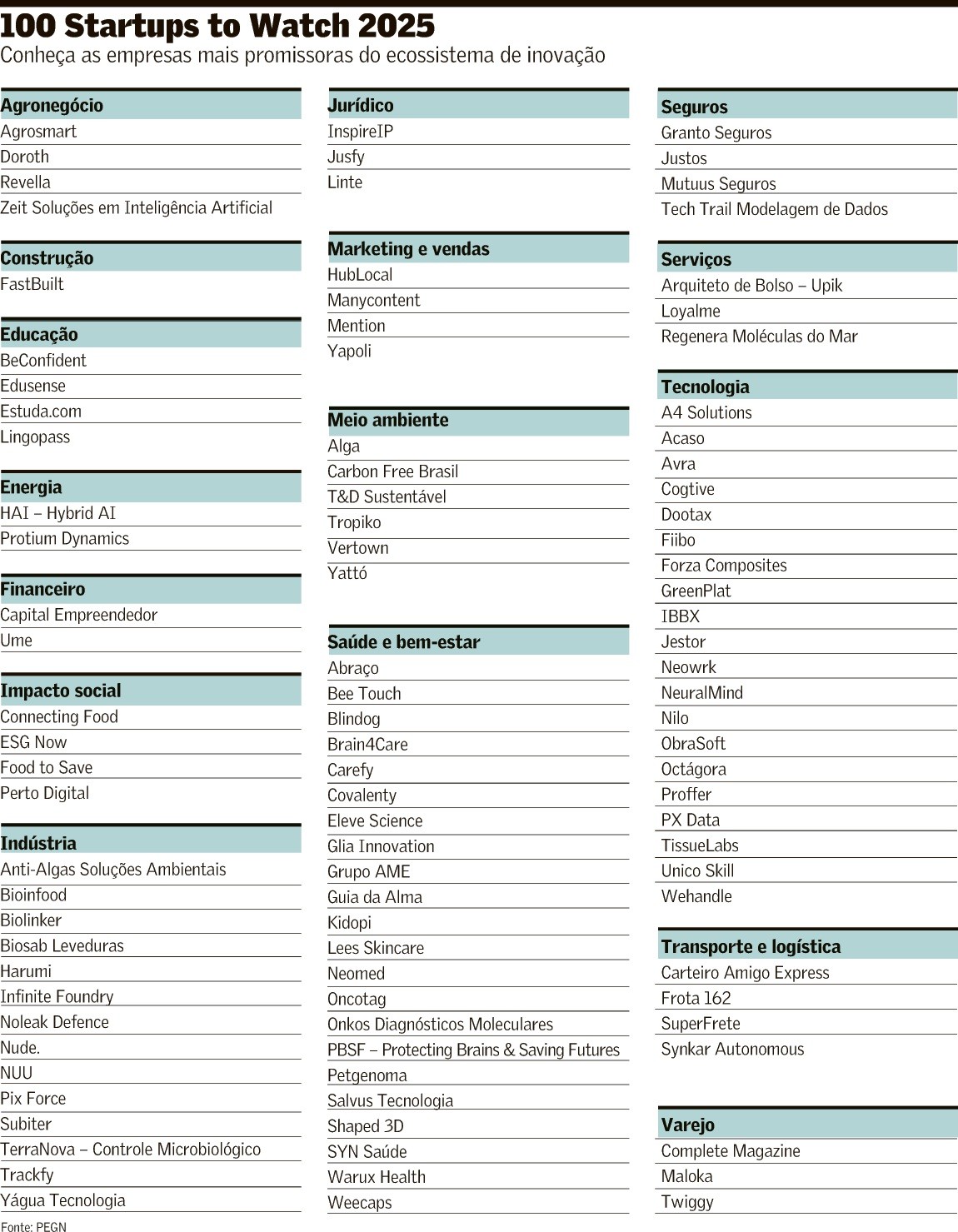 PEGN revela as empresas da lista 100 Startups to Watch de 2025 Pequenas Empresas & Grandes Negócios divulga nesta...... |